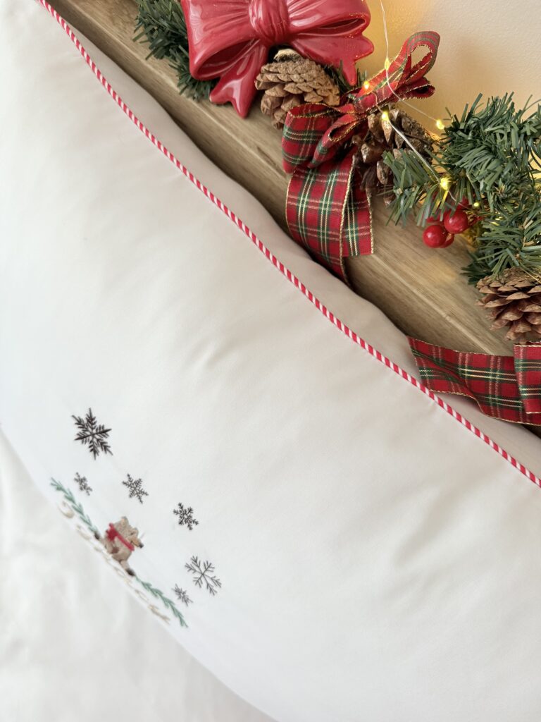Świąteczna pościel dziecięca z haftem – komplet szyty na zamówienie